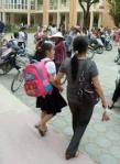 – Con cháu học lớp mấy, học trường nào, mà vất vả thế?