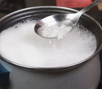 - Vo gạo, cho vào nồi với tỉ lệ nước và gạo 5:1, dĩ nhiên phải khéo tay chắt nước nếu không muốn cơm bị nhão, lượng arsenic giảm còn 43%