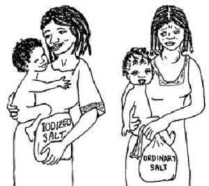 Đa số đều nghĩ thiếu iod gây ra bướu cổ. Thực ra, thiếu iod còn gây lắm chuyện hơn thế nữa. Iod là thành phần tạo ra hormon của tuyến giáp, giúp cho sự phát triển của trí não của trẻ. Ngay cả khi các bà bầu thiếu iod, cũng ảnh hưởng đến sự phát triển não của thai nhi. Người ta phải bổ sung iod vào muối là vì thế.