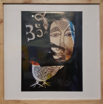 Tôi đang ở Đà lạt, ông gọi phone: Moa đang triển lãm tranh ở nhà chú Hỏa. Về đây, thích tấm nào, moa tặng. Moa tặng tranh không tặng khung, toa phải trả tiền khung. Tôi chọn một trong những bức tranh về chủ đề Chim. Bức họa tôi chọn, ông vẽ thêm cả rắn cả người.